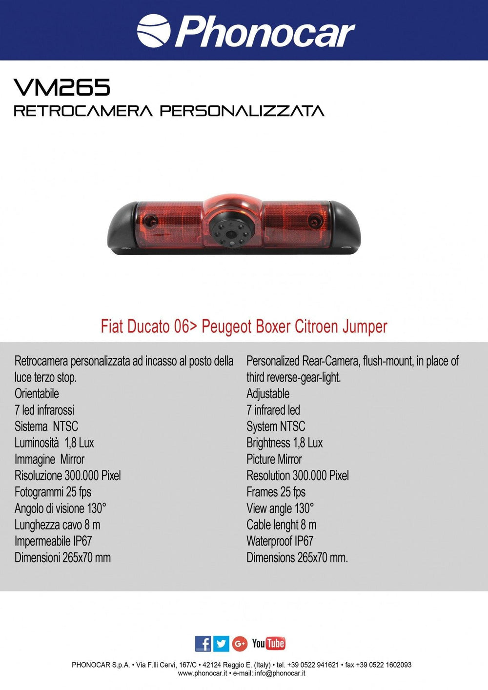 Phonocar VM265 Retrocamera personalizzata per Fiat Ducato 06- Peugeot Boxer Citroen Jumper CMD