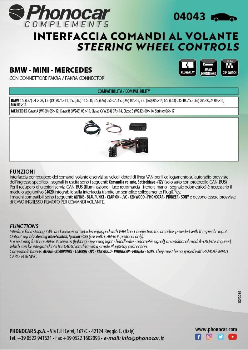 Phonocar 04043 Interfaccia Comandi Al Volante CANBUS per BMW-MERCEDES-MINI