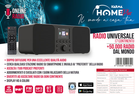 Karma HOME PLUS Radio FM/DAB+ e internet radio, Bluetooth , USB, gestibile via APP