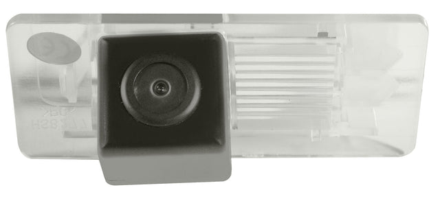 Retrocamera OEM fitting con luce targa originale e linee guida.