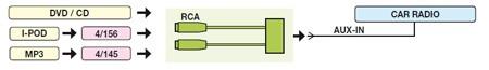 Interfaccia Audio Aux-in per collegare il segnale audio del DVD o altre sorgenti ad autoradio (di serie) utilizzando l'uscita Aux-In