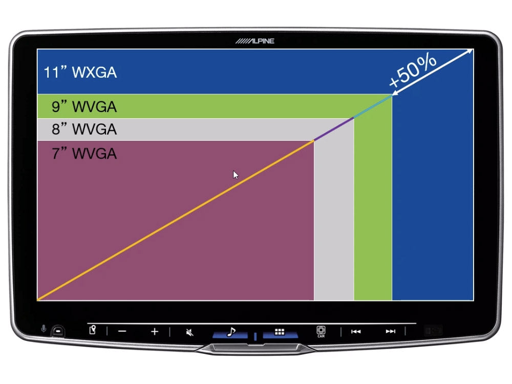 L'iLX-F115T61 Alpine Halo11 per Volkswagen T6.1 (anno modello dall'11.2019 al 2022) è la seconda generazione della famosa linea di prodotti Halo di Alpine, dotata di un touchscreen WXGA ad alta risoluzione da 11 pollici e di tutti i componenti di installazione necessari (come cablaggio plug-and-play, interfaccia CAN, telaio, ecc.) per il T6.1. Il display super sottile sembra sospeso sul cruscotto e può essere regolato in vari modi per trovare la posizione migliore.