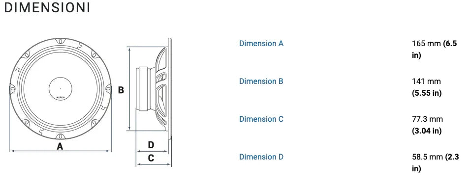 Diametro nominale 165 mm (6,5 pollici)
