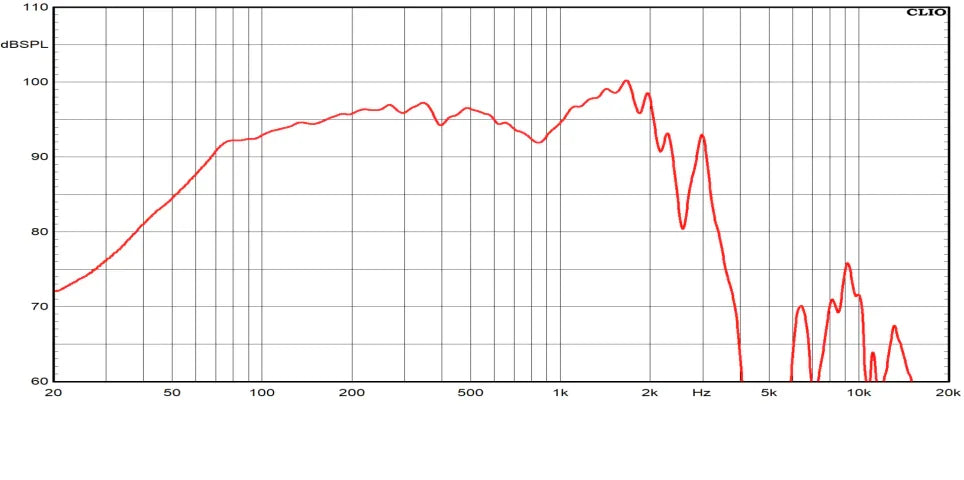Infine, il range di frequenze di utilizzo dichiarato da Ciare per questo woofer va da 35Hz a 1kHz, con una sensibilità media nominale di 97,5 dBSPL (2,83V/1m).