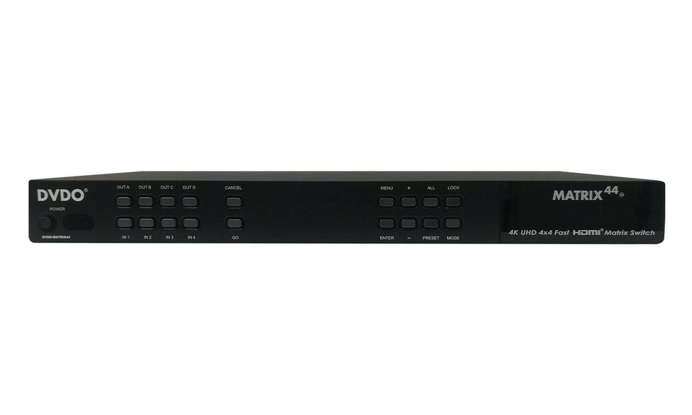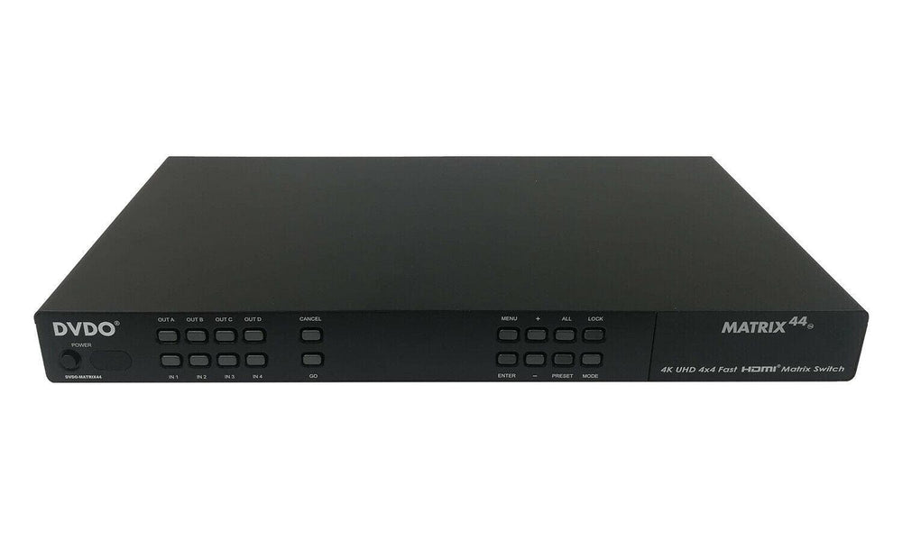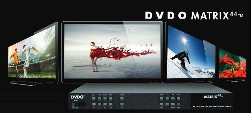 DVDO Matrix44 è uno switcher Matrix 4K HDMI® che supporta fino a quattro ingressi che trasmette fino a 4K (50/60Hz) sorgenti Ultra HD o Full HD 1080p a quattro uscite. Progettato sia per uso domestico che commerciale, fornisce intuitivo controllo e commutazione rapida per installatori e appassionati di home theater.