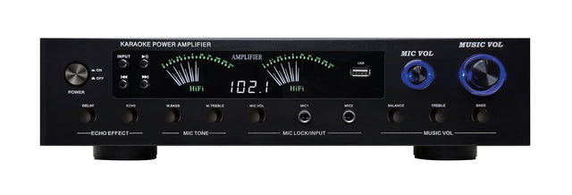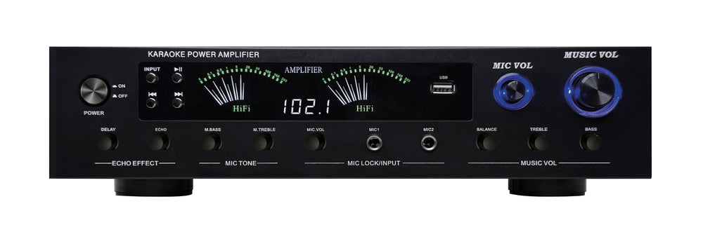 E' in grado di riprodurre file di altissima qualità in formato APE/FLAC/MMA e Mp3. Dispone di presa line in/out tramite RCA e di modulo multimediale con ricevitore bluetooth sintonizzatore FM. Sul fronte sono presenti 2 prese per microfono con regolazione dei toni e dell'effetto eco indipendenti. I display mostrano il livello del segnale amplificato e alcune informazioni sul brano in riproduzione.