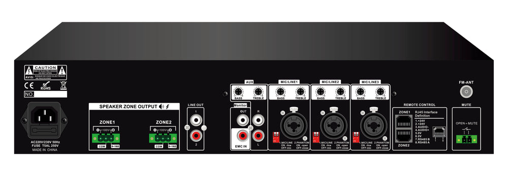 GLEMM PAA 2480 Amplificatore PA a 100V o 8-16ohm, 2 zone a matrice, radio FM e DAB+
