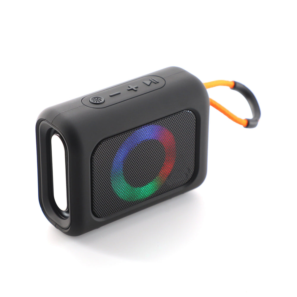 Il perfetto riproduttore di musica da portare ovunque. Realizzato con materiale di alta qualit? e con una cura del dettaglio unica. E' compatto, con batteria ricaricabile ed effetti luce attivabili a piacimento. La finitura gommata lo rende gradevole al tatto.E' in grado di leggere brani Mp3 da chiavette USB o schede microSD. Utilizzabile anche per riprodurre musica del proprio telefono tramite bluetooth 5.0La batteria interna garantisce fino a 2/3 ore di utilizzo ininterrotto e si ricarica in 1/2 ore tramite normale presa USB (cavo incluso).Il sistema di diffusione 2.1 include un woofer 3W frontale e un sistema MegaBass laterale per l'esaltazione delle tonalit? basse.La funzione vivavoce permette di rispondere alle chiamate in arrivo anche durante l'ascolto di musica.Raggio operativo: 10metriColore: Nero
