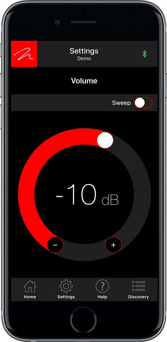 L'app Subwoofer Control di MartinLogan utilizza una connessione Bluetooth per semplificare l'installazione e la configurazione di Dynamo 600X, 800X, 1100X e 1600X. I controlli basati sull'app includono il livello del volume, il filtro passa-basso (frequenza e ordine), la fase, il livello 20–30 Hz, tre modalità di ascolto preimpostate e il controllo di Anthem Room Correction. Un'esclusiva funzione di scansione del tono aiuta gli utenti a localizzare le aree nelle stanze di ascolto in cui possono verificarsi rumori fastidiosi o risonanze. Una singola pressione di un pulsante consente agli ascoltatori di avviare uno sweep di toni da 20 a 120 Hz. Se nella stanza si verifica un rantolo o una risonanza, è possibile mantenere qualsiasi frequenza, consentendo all'ascoltatore di indagare e identificare la fonte del rumore indesiderato.