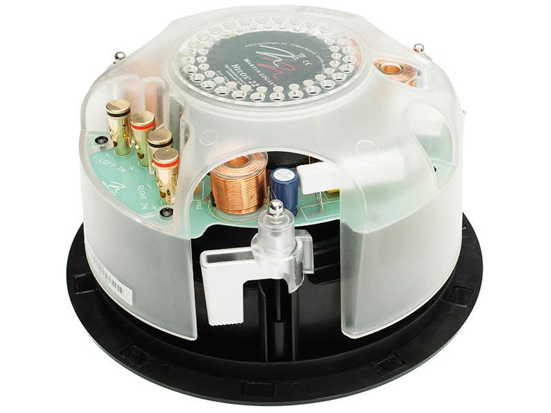 MARTIN LOGAN HELOS 22 disffusore da soffitto per piccoli ambienti, progettato per l'uso come singolo altoparlante stereo o come surround o canale Atmos in un sistema home theater ad ampia dispersione.