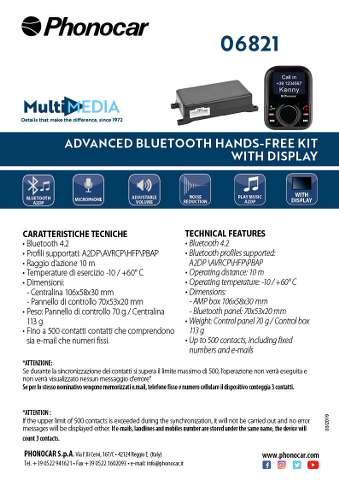 Il nuovo vivavoce Phonocar 06821 è un kit universale bluetooth che combina due funzioni fondamentali per chi è alla guida: ti permette, infatti, di ascoltare la tua musica preferita e di sapere, grazie al display integrato, chi ti chiama (o chi stai chiamando) senza spostare le mani dal volante.