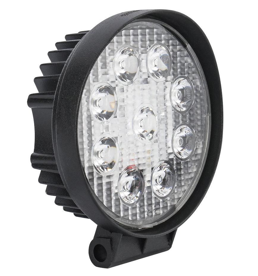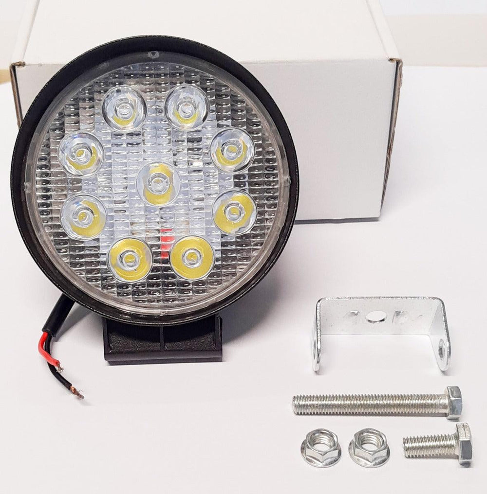 Faro addizionale rotondo impermeabile con 9 LED EPISTAR da 1750 Lm ad alimentazione 12/36V per mezzi da lavoro, mezzi con allestimenti speciali, fuoristrada, escavatrici, mezzi di soccorso, muletti, trattori, ecc..