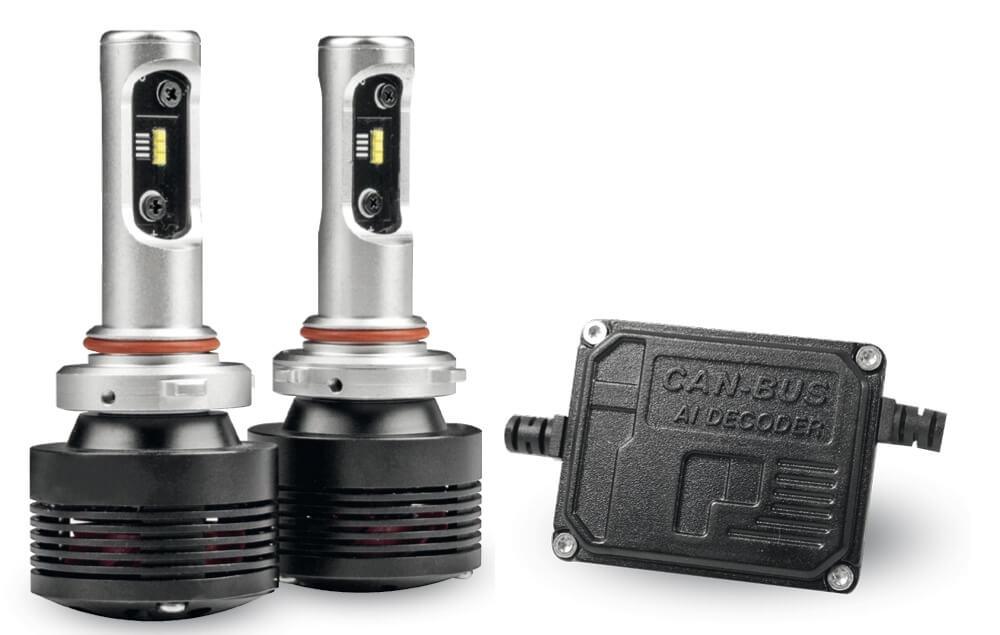 Questo kit è composto da una coppia di lampade Led 07405 da 4000 Lm 36W con attacco HB3 - HB4 e un interfaccia CAN BUS 07565 specifica per queste luci che stabilizzando la corrente elimina segnalazioni di errore/anomalia lampada sulle spie delle auto di ultima generazione dotate di body-computer a protocollo Can-Bus.