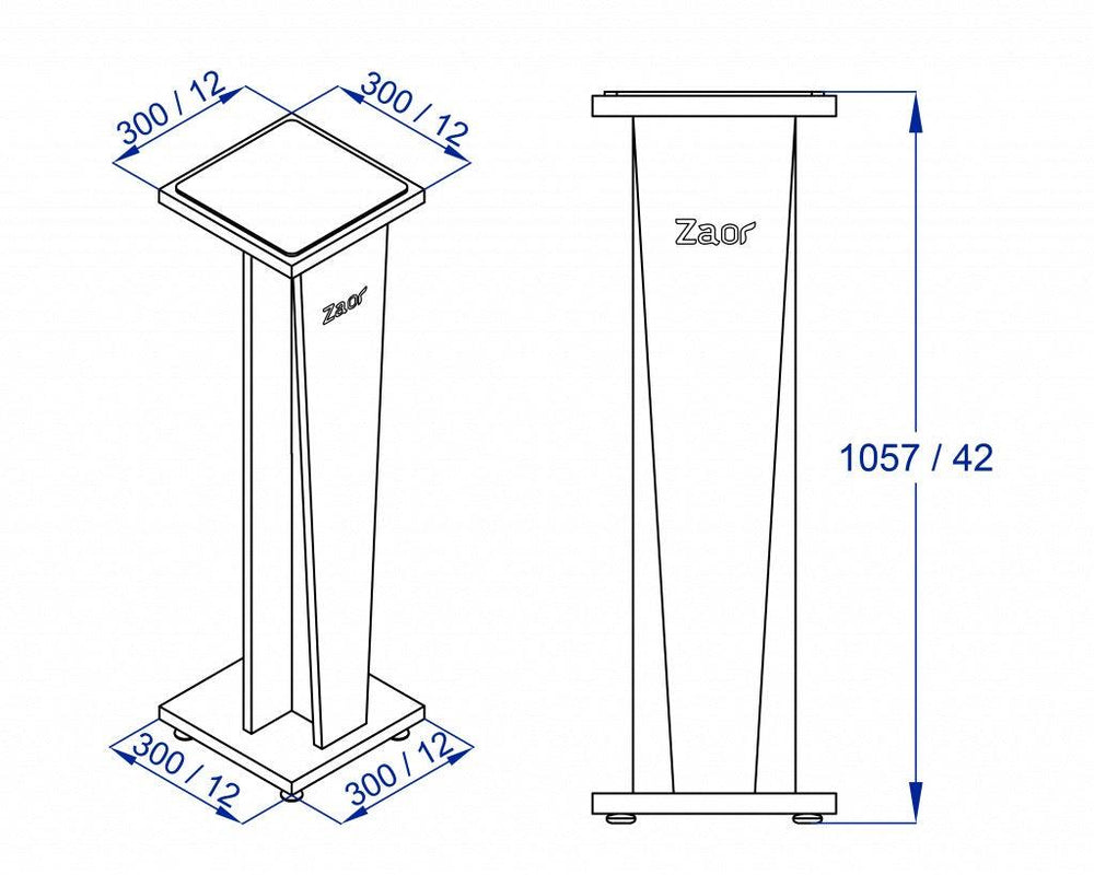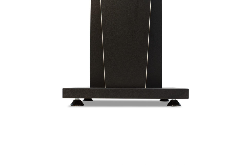 ZAOR MIZA V-STAND 42 BLACK COPPIA DI SUPPORTI DA TERRA PER MONITOR DA STUDIOGli Zaor Miza V-Stand sono stati progettati tenendo conto di due criteri principali: devono essere accessibili e tuttavia progettati secondo i migliori standard di prestazioni tecniche e design. Sono stati scelti gli stessi materiali degli altri articoli della gamma Miza, ma con due particolari che lo rendono un supporto per diffusori molto professionale e altamente usabile. E' stato aggiunto un pad Aerstop sulla parte superiore del supporto, che aiuta a isolare l'altoparlante dal supporto, riducendo la propagazione del contenuto di frequenza più bassa attraverso l'altoparlante sino al pavimento e quindi alla stanza.Caratteristiche tecniche: Pad Aerstop per il disaccoppiamento degli altoparlanti dalla stanza Dimensioni Pad Aerstop: 270 x 270mm Piano superiore: 300 x 300mm Piastra base: 300 x 300mm Altezza: 1071mm Compatibile con la linea Miza Carico max: 40kg Colore: Nero